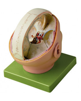 Natural size, in SOMSO-Plast®. Separates into 10 parts: green base of the head, cranium, eye, falx c..